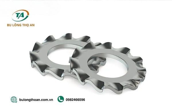 Long đen răng cưa có bề mặt với các răng cưa nhỏ, giúp tăng cường độ bám và chống trượt. Loại long đen này rất hữu ích trong các ứng dụng yêu cầu giữ chặt các chi tiết hoặc ngăn ngừa sự di chuyển không mong muốn của các bộ phận. Loại long đen này rất hữu ích trong hầu hết các ngành công nghiệp cơ khí, chế tạo máy móc,…