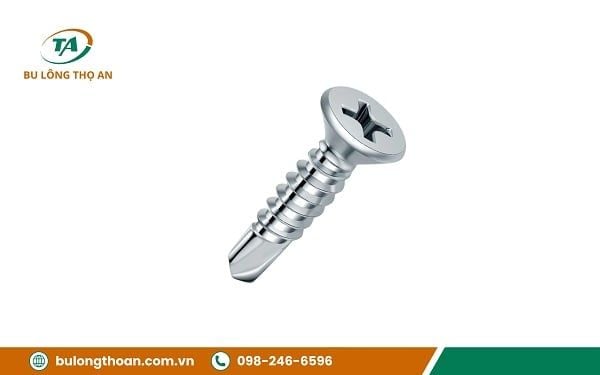 Vít tự khoan là loại vít có mũi nhọn dạng mũi khoan ở đuôi cho phép khoan xuyên qua bề mặt vật liệu mà không cần khoan mồi. Đây là lựa chọn cần thiết khi bạn thi công ở các vật liệu như tôn, kim loại mỏng, gỗ cứng hoặc nhôm, vì giúp tiết kiệm thời gian và giảm chi phí thi công.