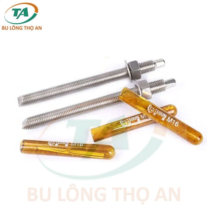 – Hóa chất cấy thép dạng con nhộng: Tương ứng mỗi bộ bu lông hóa chất dùng với 1 ống hóa chất dạng con nhộng.