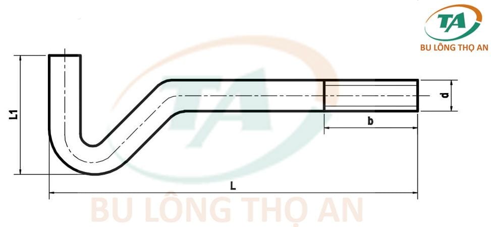 Dưới đây là chi tiết thông số kỹ thuật của bulong neo dạng chữ LA