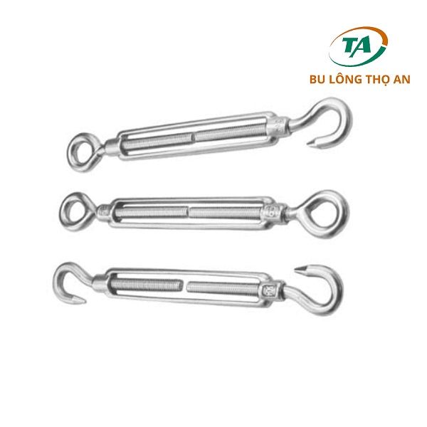 Tăng đơ cáp inox loại đầu móc kéo: Với 2 đầu dạng móc kéo, chúng thường dùng cho các ứng dụng yêu cầu độ căng đều và cần tháo lắp dễ dàng.