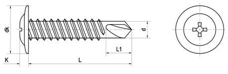 Vít tự khoan đầu tròn có phần đầu hình vòm hoặc bán cầu, thường được thiết kế với rãnh bắt vít chữ thập hoặc dẹt. Đây là loại vít rất phổ biến trong thi công lắp đặt các bảng điện, tấm nhựa, hoặc các chi tiết cơ khí có yêu cầu thẩm mỹ cao ở phần bề mặt. Đầu tròn giúp hạn chế hiện tượng lún hoặc nứt vật liệu khi siết chặt, đồng thời tạo độ thoáng và dễ điều chỉnh lực vặn bằng tua vít hoặc máy bắt vít.